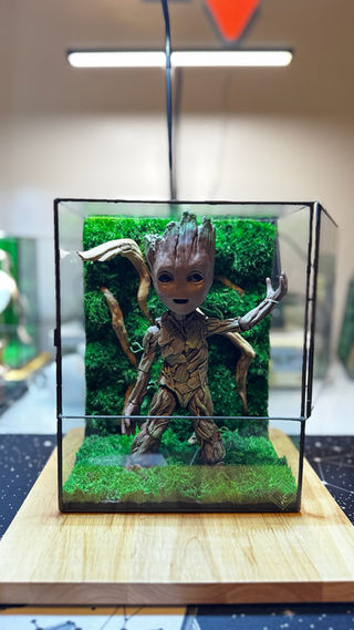 Elevate your decor with our large Groot terrarium, featuring a highly detailed Groot figure that captures his iconic features. The terrarium is adorned with preserved moss for a rich, green backdrop and Natural Red Moor Driftwood, adding a touch of rugged elegance. This unique piece blends artistic craftsmanship with natural elements, perfect for enhancing any space.